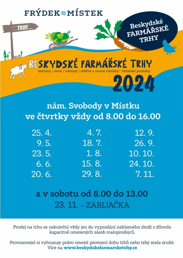 Radnice ve Frýdku-Místku již po 14. připravila oblíbené Beskydské farmářské trhy. První z nich se letos uskuteční o 14 dní dříve než obvykle, a to ve čtvrtek 25. dubna na náměstí Svobody v Místku.