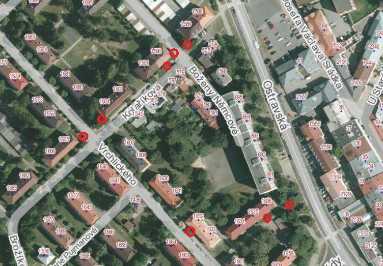 Ke kácení stromů dojde před bytovými domy č. p. 1589, 1590 a 1604 na ulici Kolaříkova. Dále bude kácení provedeno v křižovatce ulice Kolaříkova a Vrchlického. Na ulici Vrchlického pak před bytovým domem č. p. 1632 a na ulici Fibichova v okolí bytového domu č. p. 1636. Při této opravě je nutné vytěžit zeminu nad vedením plynovodu tak, aby bylo možné vedení sítě včetně přípojek vyměnit. Vzhledem k faktu, že níže uvedené stromy se nacházejí v trase výkopu nebo přímo na plynových přípojkách, které vedou k domům, není možné stromy zachovat, protože by při výkopu došlo k rozsáhlému poškození kořenového systému těchto stromů a mohlo by být ohroženo zdraví nebo majetek občanů.