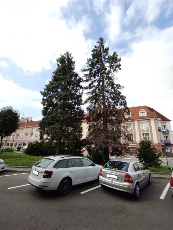 Technické služby pokácejí jeden ze smrků na Kostikově náměstí ve Frýdku. Strom je silně proschlý a může být nebezpečný pro své okolí. Na smrku stojícím vedle pracovníci provedou tzv. tahové zkoušky a následně dojde k vyhodnocení, zda je druhý strom v pořádku a zůstane na místě. Ke kácení proschlého stromu má dojít nejpozději do konce března.