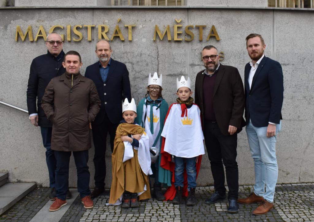 Nejmenší koledníci Tříkrálové sbírky navštívili magistrát. Děti v přestrojení za Kašpara, Melichara a Baltazara zazpívaly a popřály do nového roku.
