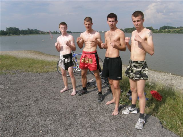 Tento týden probíhá pracovní tábor a já dostal bojový úkol vám o tom napsat!!První den proběhl v totalním nasazení.Odtrénovali jsme 6 tréninků za den.Pět tréninků thaiboxu a jednou posilovna.A jako bonus sekání trávy.V úterý ráno jsme si dali 4 km běhu plus 2 hodinky na lapy,zase to nějaké válení v seně a další 4 km běh.Potom výprask od kazatele!!!(pan Honek).Hned potom byl trénink orientovaný na drily a jako třešnička na dortu………..Jsem rád že už jdu spát ráno mám 3 hodiny sparingu!Kuba Gazdík