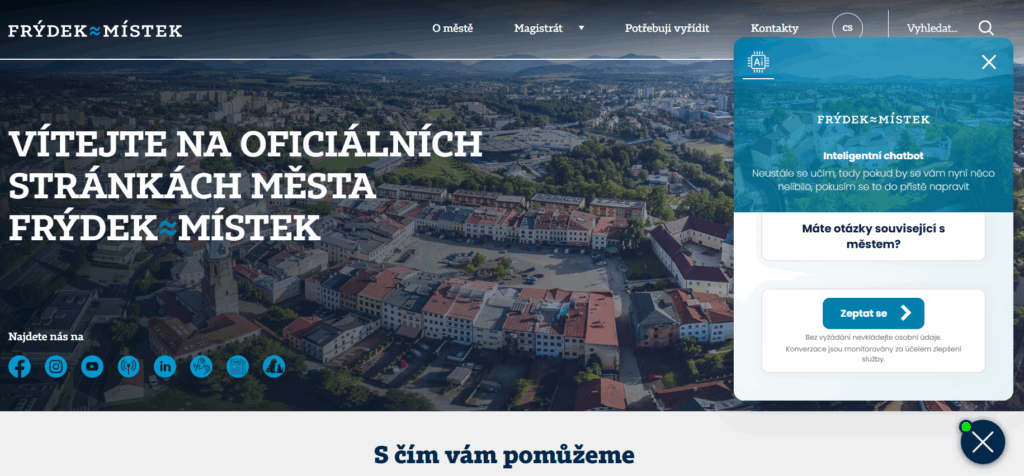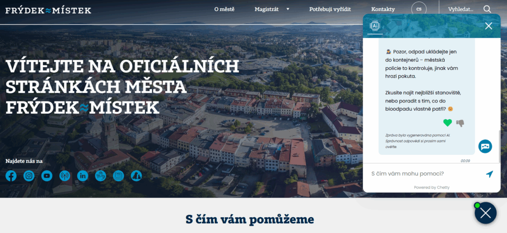 LIDEM S ORIENTACÍ NA WEBU MĚSTA FRÝDKU-MÍSTKU NOVĚ POMŮŽE VIRTUÁLNÍ ASISTENT CHETTY