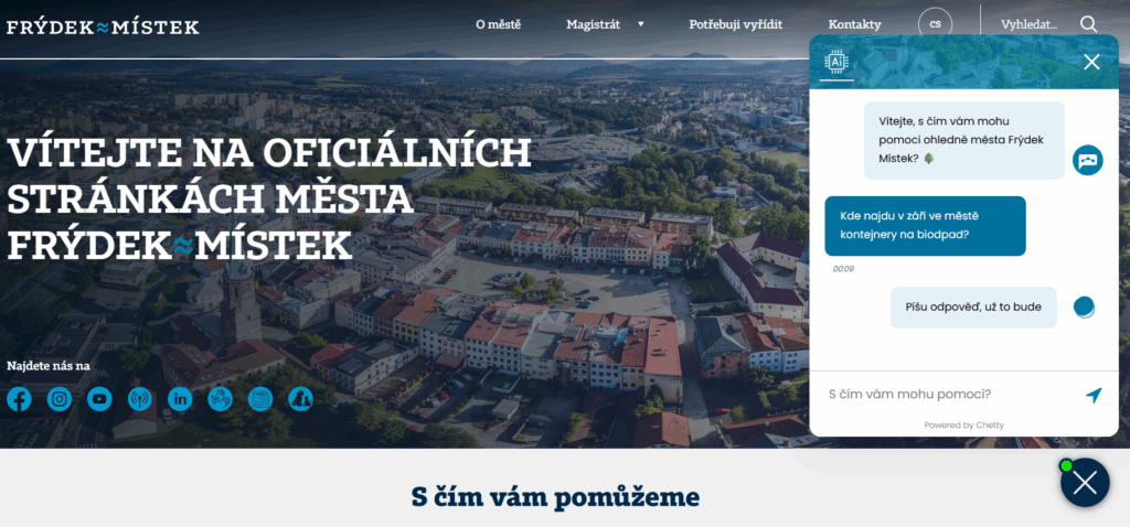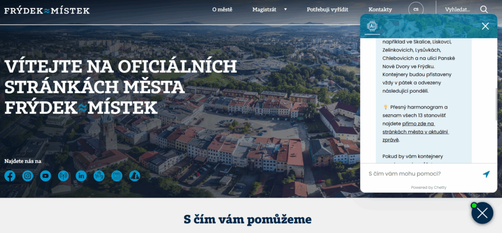 Město Frýdek-Místek spustilo na svých webových stránkách novou službu – virtuálního asistenta Chettyho. Využití umělé inteligence by mělo usnadnit obyvatelům i návštěvníkům města získat potřebné informace i zlepšit komunikaci s úřadem.