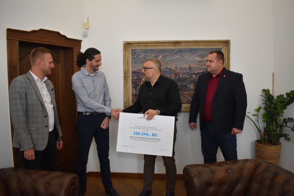 Předání symbolického šeku se uskutečnilo první březnovou středu v budově magistrátu. Společně s ředitelem Charity Frýdek-Místek Martinem Hořínkem a primátorem města Petrem Korčem (Naše Město F-M) se ho zúčastnili také náměstek pro sociální oblast a zdravotnictví Marcel Sikora (SPOLU) a náměstek primátora pro oblasti bezpečnostních rizik, ochrany veřejného pořádku, požární ochrany, prevence kriminality a městské policie Lukáš Kmec (ANO 2011).