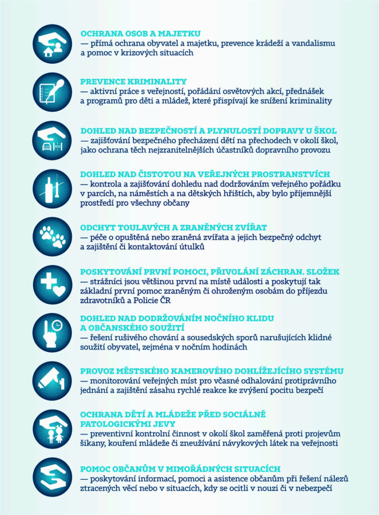 • chráníme obyvatele a majetek, předcházíme krádežím a vandalismu,