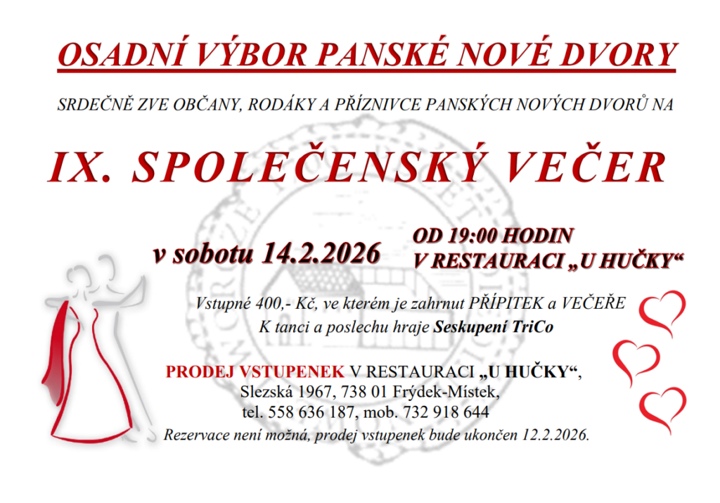 Pravidelné, veřejné schůze OV Pánské Nové Dvory, budou probíhat každé druhé úterý v měsíci.