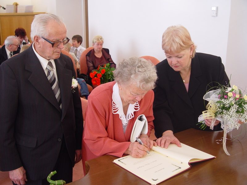 V obřadní síni frýdeckého zámku si poslední dubnový den připomněli svou svatbu Alois a Aloisie Volní. Ve vzpomínkách museli zalovit šedesát let zpátky, takže jim radní Oldřich Pospíšil spolu se starostkou města Frýdku-Místku Evou Richtrovou mohli poblahopřát k diamantové svatbě.