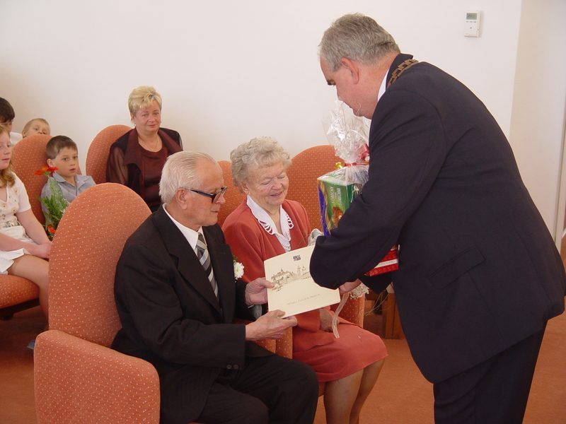 „Všechno na světě může člověk zastavit, nebo případně zpomalit. Jen čas se vymyká těmto lidským možnostem. Moudří lidé říkají, že měří všem stejně a spravedlivě. Před šedesáti lety jste byli oddáni a celým svým životem jste nejen sami sobě, ale také všem svým blízkým dokazovali, jak pěkné mohou být vztahy člověka k člověku, vztahy mezi ženou a mužem,“ promlouval k jubilujícímu páru Oldřich Pospíšil.