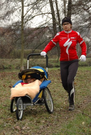 Běhání s vozíkem je naprosto v pohodě a je to otázka zvyku a hlavně chtění. Velkou výhodou je možnost celoročního provozu vozíku. V chladném počasí stačí překrýt vozík igelitovou pláštěnkou, která chrání dítě proti chladnému proudícímu vzduchu.