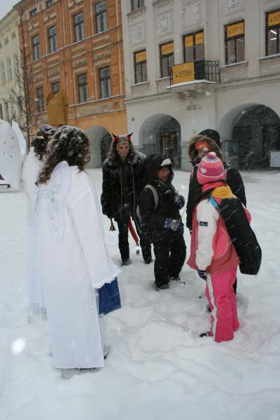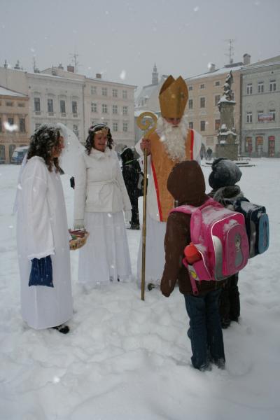 Beskydské informační centrum Frýdek-Místek společně s Vyšší odbornou školou Goodwill s.r.o. uspořádali pro děti animační program, který tak zpestřil zimní odpoledne v Místku. Studenti VOŠ Goodwill, kteří se za tuto čtveřici převlékli, absolvovali tento program v rámci své výuky. Odolali také silnému sněžení a mrazu, které celé odpoledne doprovázelo. Děti, které zarecitovaly básničku nebo zazpívaly písničku, odměnil Mikuláš pastelkami, švihadly, lízátky a dalšími drobnostmi.