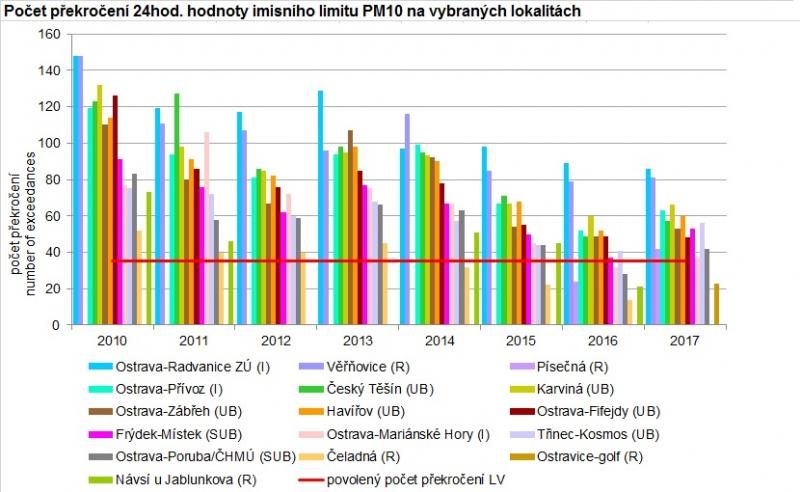 „Kvalitu ovzduší ovlivňují, kromě vlastních zdrojů znečištění, také zhoršené rozptylové podmínky, které se obvykle častěji vyskytují v zimních měsících. Koncentrace PM10 vykazují zřetelný roční chod s nejvyššími koncentracemi v chladných měsících roku,“ stojí v dokumentu ČHMÚ – Předběžné zhodnocení kvality ovzduší a rozptylových podmínek v roce 2017.