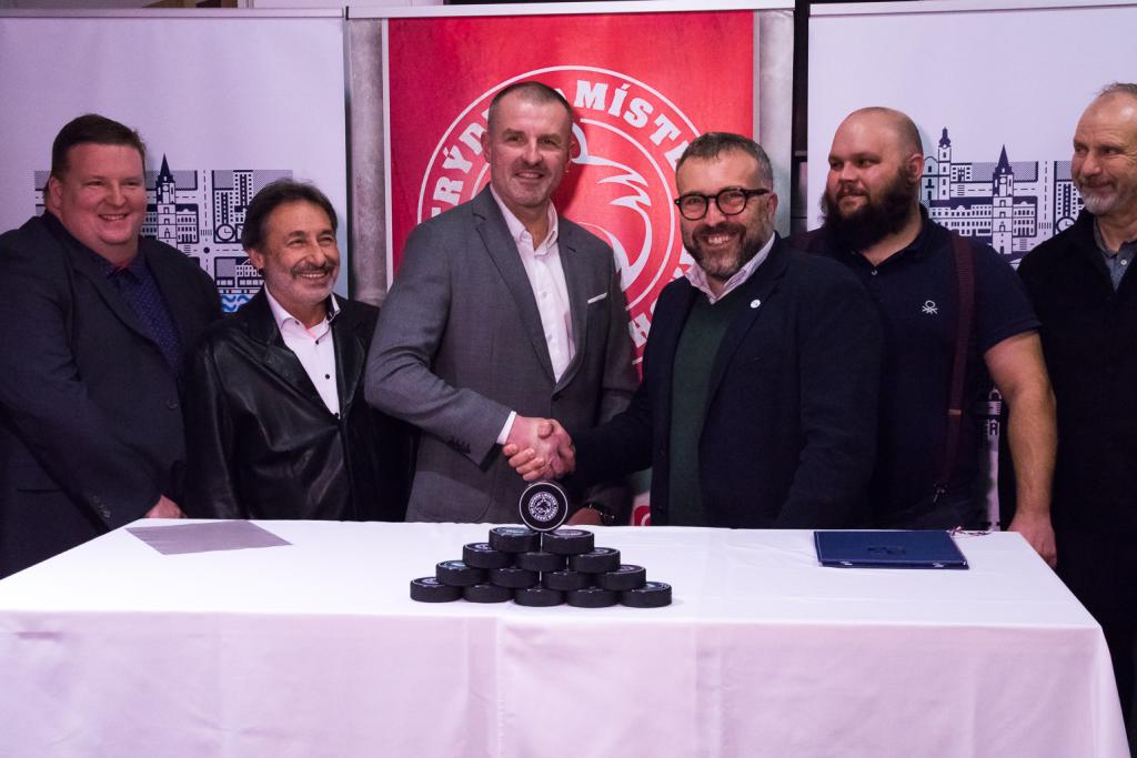 Podporu hokejistům představitelé vedení města stvrdili podpisem se zástupci klubů HC Frýdek-Místek, spolek, HC Oceláři Třinec, a.s., a HC Frýdek-Místek 2015, s.r.o.