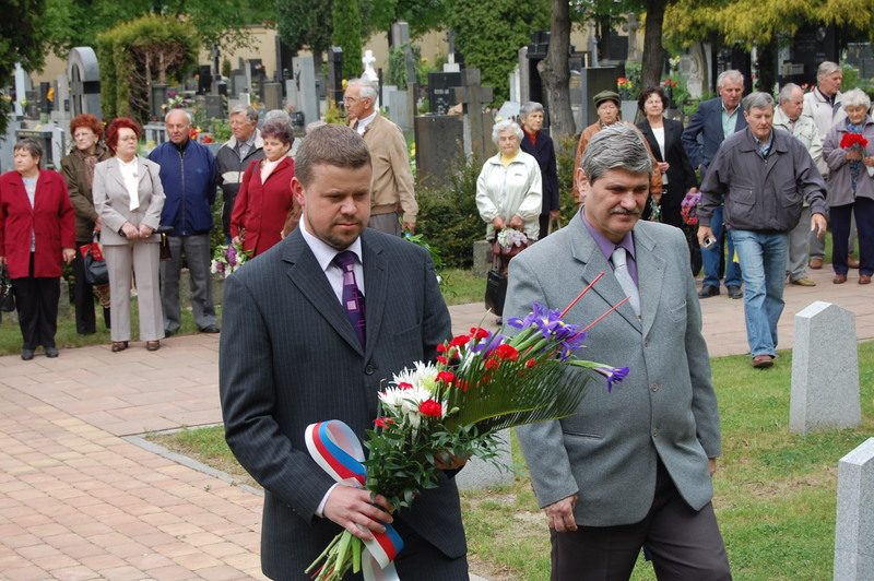 „Scházíme se tu rok co rok, abychom uctili památku padlých 966 vojáků a 75 důstojníků Sovětské armády, jejichž ostatky byly svezeny sem na centrální hřbitov z tehdejších okresů Český Těšín, Fryštát, Nový Jičín a Frýdek-Místek. Položenými květinami si připomínáme nejen je, ale i všechny další oběti II. světové války, mezi nimi i 44 padlých občanů při osvobozování našeho města a blízkého okolí. Aspoň symbolickou květinu by měli u této příležitosti dostat všichni, kteří v pohnutých letech byli nuceně nasazeni, kteří prošli koncentračními tábory, zažili pochod smrti, kteří se po prožitých útrapách s podlomeným zdravím vrátili, ale z nichž samozřejmě již dnes mnoho není mezi námi,“ řekl zúčastněným ve svém projevu náměstek primátora Petr Cvik. Ten připomněl nedávnou výstavu na půdě frýdecko-místecké radnice s mottem Aby se to už neopakovalo. „Myslím, že tato výzva má nadčasovou platnost při každé pietní vzpomínce,“ vysvětlil a vyslovil přání, aby i příští generace mohly naplno žít obsahem slov mír, svoboda a demokracie.