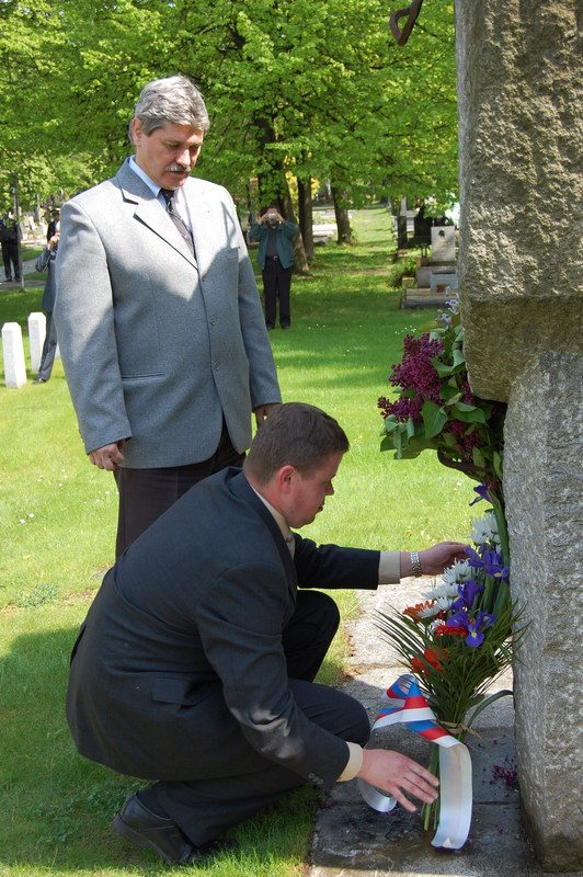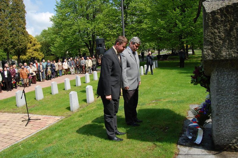 „Nemůžeme zapomenout ani na české občany, kteří neváhali položit život za svobodu při osvobozovacích bojích o Frýdek-Místek. Místo jejich posledního odpočinku připomíná skupina protějších hrobů. Všechny tyto oběti vojínů i civilistů nejen žalují, ale především varují před lidskou nenávistí. Před tou varují i ti, kteří by mohli právem zatrpknout, protože hrůzy války prožili na vlastní kůži,“ řekl ve svém slavnostním proslovu náměstek primátorky Petr Cvik, který za město položil k památníku kytici spolu s radním Ivanem Vrbou.