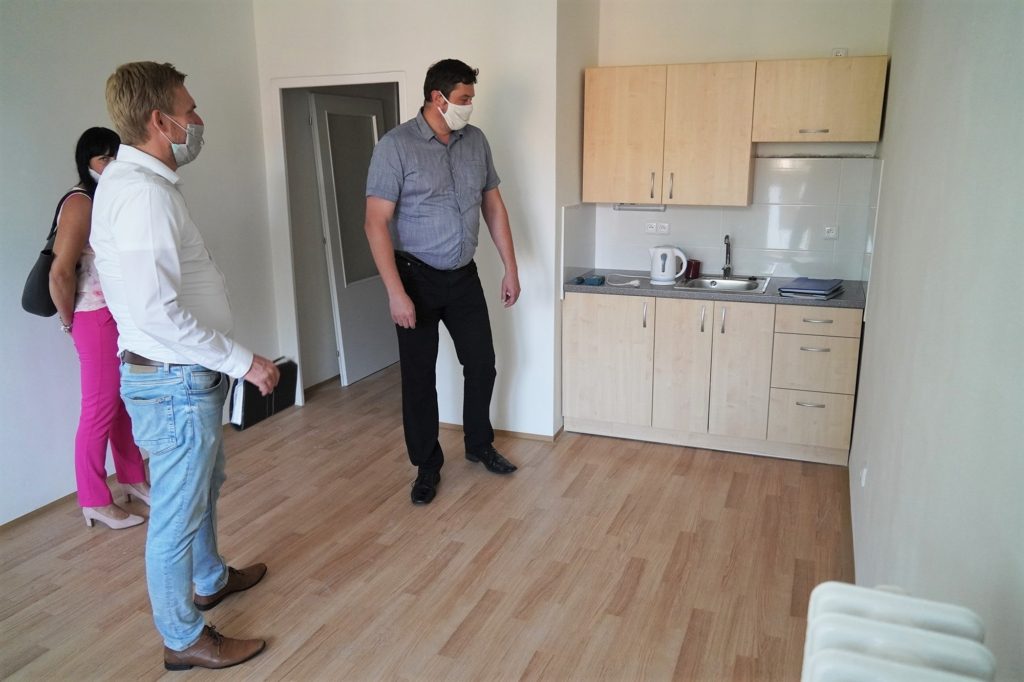 „V rámci finančních prostředků určených na záchovnou údržbu a opravy bytů ve vlastnictví města prošlo podstatnými opravami, tedy s náklady přesahujícími sto tisíc korun, letos už 33 obecních bytů a dalších 14 bytových jednotek v domech zvláštního určení. Vyměňují se zařizovací předměty, podlahy, obklady, interiérové a vstupní dveře, kuchyňské linky, vestavěné skříně, ale v případě potřeby i elektrorozvody nebo se vyzdívají bytová jádra,“ vyjmenoval nejčastější charakter úprav náměstek primátora Radovan Hořínek. Ten se byl s náměstkem Marcelem Sikorou podívat, jak dopadly stavební úpravy v garsonce na ulici 17. listopadu. I zde na nájemce čekají nové zářivé omítky, kuchyňská linka i podlahová krytina, bylo vyměněno sociální zařízení, rozvody vody a elektroinstalace i dveře. „Chceme, aby se starší lidé v městských bytech cítili dobře a konkrétně tady tomu pomáhá i velmi klidná lokalita s dostatkem zeleně,“ hodnotil zrenovovaný byt Marcel Sikora.