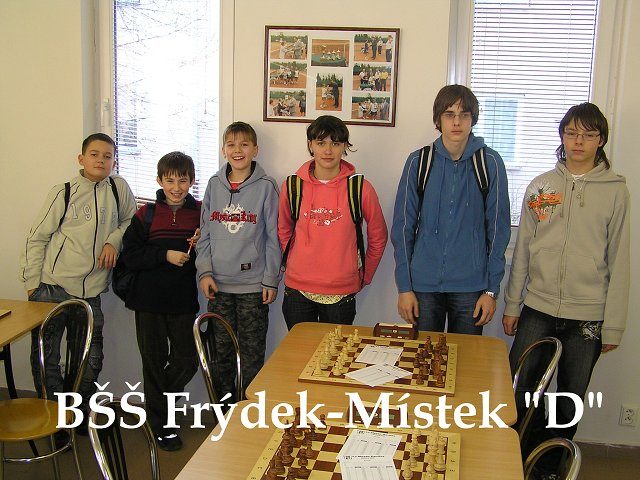 „D“ družstvo má na svém kontě 4 zápasové výhry a 3 prohry. 12 získaných bodů dává našemu týmu 7.místo, což je klidné místo ve středu tabulky. Výbornou zprávou je, že náš tým nečekají záchranářské práce, protože v dalších utkáních má přijatelné soupeře a zcela jistě ještě nějaké body přidá. Z družstva si velkou pochvalu zaslouží Jiří Kozel, který spolehlivě boduje. Dobře mu sekundují Petr Fiala a Vladimír Biolek. Těžkou pozici na prestižní 1.šachovnici má Marek Kawulok, ale 3 získané body týmu moc pomohly. Ostatní hráči střídají lepší okamžiky s horšími a potýkají se s nestálostí své formy.