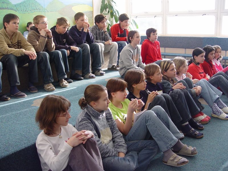 Dvě skupiny šesťáků 8. ZŠ měly příležitost podebatovat s místostarostou Petrem Cvikem, který se tak na chvíli vrátil před katedru, odkud žákům především zdůrazňoval, jaké jim dnešní svět ve srovnání s minulostí přináší příležitosti.
