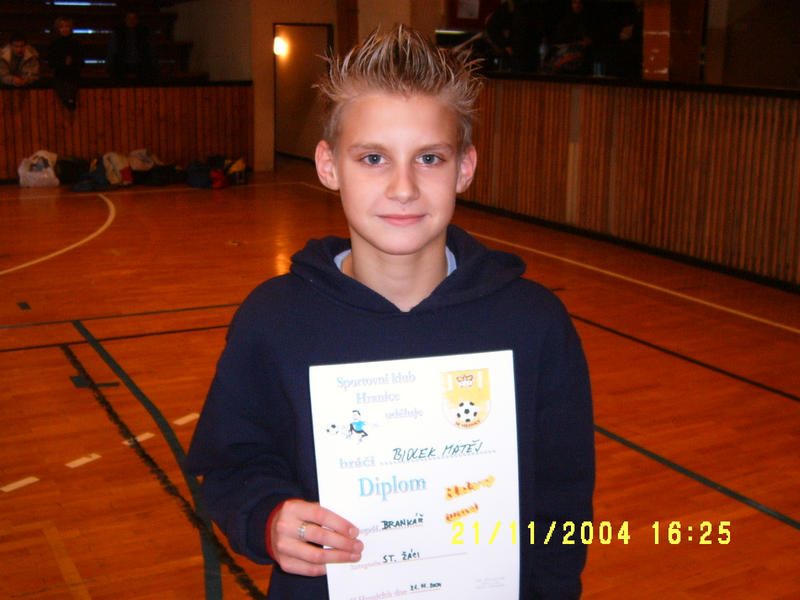 Starší žáci fotbalového týmu FK Frýdek-Místek (ročník 1991) se v minulém týdnu zúčastnili halového turnaje v Hranicích na Moravě. Na tomto turnaji hrálo celkem osm mužstev, které byly rozděleny do dvou čtyřčlenných skupin. Frýdecko-místečtí hráči se ve své skupině utkali postupně s béčkem Hranic, Přerovem a Uničovem. V úvodním duelu si Frýdek poradil po boji s Hranicemi B 2:0, když obě branky vstřelil Lukáš Farský. V zápase s Přerovem sice frýdečtí prohrávali brankou z trestného kopu, ale pak pěti zásahy obrátili průběh utkání. Do listiny střelců se postupně zapsali Škuta, Pešek, Horák, Řezáč a Farský. Ani v posledním utkání ve skupině nenechali valcíři nic náhodě a hráče Uničova vyprovodili z palubovky výsledkem 6:2 (Pešek 3, Horák 2, Farský). První místo ve skupině určilo, že v semifinále se Frýdek utká s domácími SK Hranice A. Druhou semifinálovou dvojici tvořil vítěz skupiny A ŠSK Bílovec a FKM Přerov. „Kluci svou základní skupinu vyhráli naprosto zaslouženě. Ve všech třech střetnutích byli lepší. Zvláště se jim povedlo to poslední utkání s Uničovem, ve kterém předvedli i velmi pohledné akce,“ pochválil kluky asistent trenéra Ján Balko. V semifinále nejdříve rozdrtil Bílovec svého soupeře z Přerova 8:1 a pak přišel na řadu zápas Frýdku s Hranicemi. V řádné hrací době skončil duel remízou 2:2, když se o branky postarali Větříšek a Farský. O postupujícím do finále tak tedy rozhodovaly pokutové kopy. Na ty byly nakonec úspěšnější Hranice a radovaly se tak z postupu. Hráče Frýdku tak čekal boj o bronzovou příčku, o kterou se utkal opět se soupeřem ze skupiny FKM Přerov. Také v tomto souboji předvedli mladí hráči Frýdku-Místku dobrou kopanou a po vítězství 3:1 se radovali ze zisku třetí příčky. Branky stříleli Řezáč 2 a Pešek. Vítězem turnaje se stali hráči Bílovce, kteří ve finálovém boji zdolali Hranice 4:3. Nejlepším brankářem byl vyhlášen frýdecko-místecký Matěj Biolek. Turnaje se zúčastnili: Matěj Biolek – Lukáš Farský, Jiří Pešek, Jaromír Škuta, Vojtěch Horák, Matěj Větříšek a Roman Řezáč.