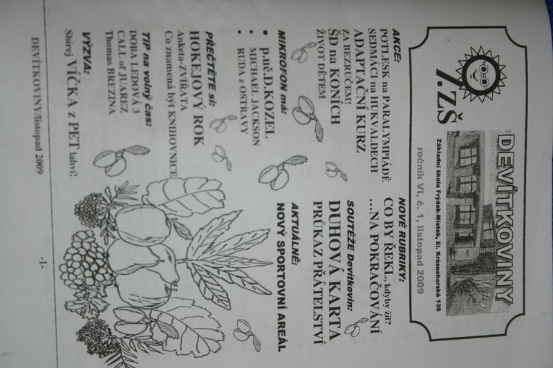9. základní škola E. Krásnohorské ve Frýdku-Místku uspěla v celostátní soutěži školních a mládežnických časopisů. Její Devítkoviny byly vyhodnoceny jako třetí nejlepší školní časopis roku 2009 v Česku.