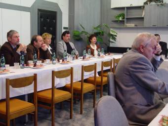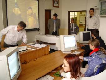 Přítomní se po příjemné vzájemné diskuzi vydali do prostor školy zhlédnout, co v rámci Dne otevřených dveří učni a pedagogové připravili, zastavili se u soutěže o nejlepší dřevařský výrobek a pak už se vydali pokřtít nové zařízení na bazéně, určené tělesně postiženým. Praktická ukázka všechny přesvědčila, že zařízení handicapovaným přinese maximální komfort.