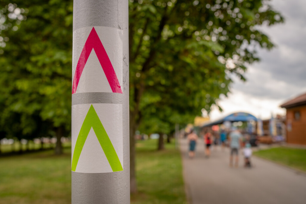 V terénu by se tak návštěvníci měli snadno zorientovat i bez mapy, a to pomocí značení, které je barevně odlišené pro každý okruh tak, aby se nepletlo s klasickými turistickými značkami. Celkové náklady na realizaci značení vyšplhaly na téměř 260 tisíc korun včetně DPH. Jedná se o pásové značky, samolepky, nátěry i dřevěné směrovníky.