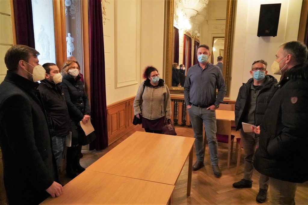 Exkurze, která již byla po první návštěvě více konkrétní a praktická a jíž se dále účastnili zástupci města a nemocnice, již nastínila využití jednotlivých místností. Občané by měli vcházet hlavním vchodem do prostor restaurace Švejk, kde by se měla odbývat administrativa. Se správně vyplněnými formuláři je v předsálí budou čekat doktoři, kteří musí jejich způsobilost k očkování posvětit a budou konzultovat některé individuální překážky ve vakcinaci, jako je například možné těhotenství, léky na krevní srážlivost, jiná očkování, některá chronická onemocnění nebo onkologická léčba. V hlavním sále má probíhat vlastní očkování, po kterém musí pobýt lidé ještě půlhodinku v navazující aule, než budou moci Národní dům opustit vchodem ze zahrady. „Dá se to tady výborně zařídit v jednom směru, aby se lidé zbytečně nepotkávali. Spolupráce s městem je super, je tu perfektní zázemí, nemusíme někde zajišťovat komerční prostory,“ pochvaloval si Tomáš Kotyza, ředitel krajského úřadu. „Už jsme ve fázi, kdy začneme pomocí volebních zástěn řešit konkrétní rozmístění jednotlivých pracovišť, koridory, trasy, jsme domluveni, kdo co dodá a co se pokusí zajistit. Chtěli bychom tady mít i vyvolávací systém, aby to bylo pro lidi co nejjednodušší,“ uvedl primátor Michal Pobucký.