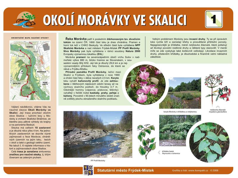 Frýdek-Místek se může pochlubit další naučnou stezkou - Okolo Morávky ve Skalici. Slavnostní otevření stezky pro širokou veřejnost se uskuteční 30. září v 9 hodin u tabule č.1, která je v blízkosti restaurace Zanzibar ve Skalici na Kamenci, u mostu přes řeku Morávku.