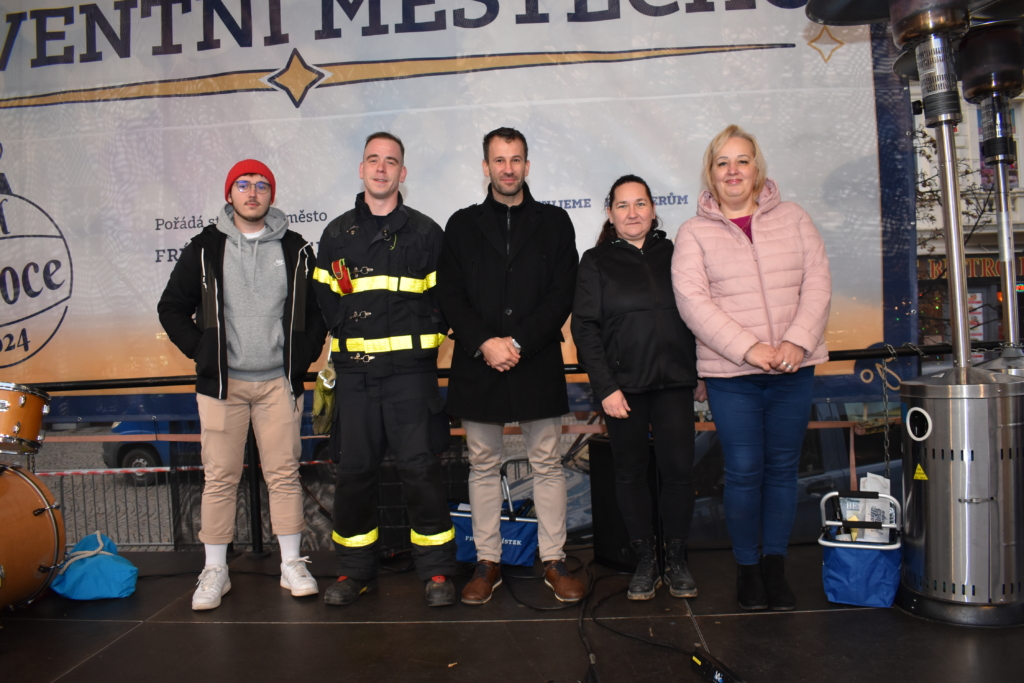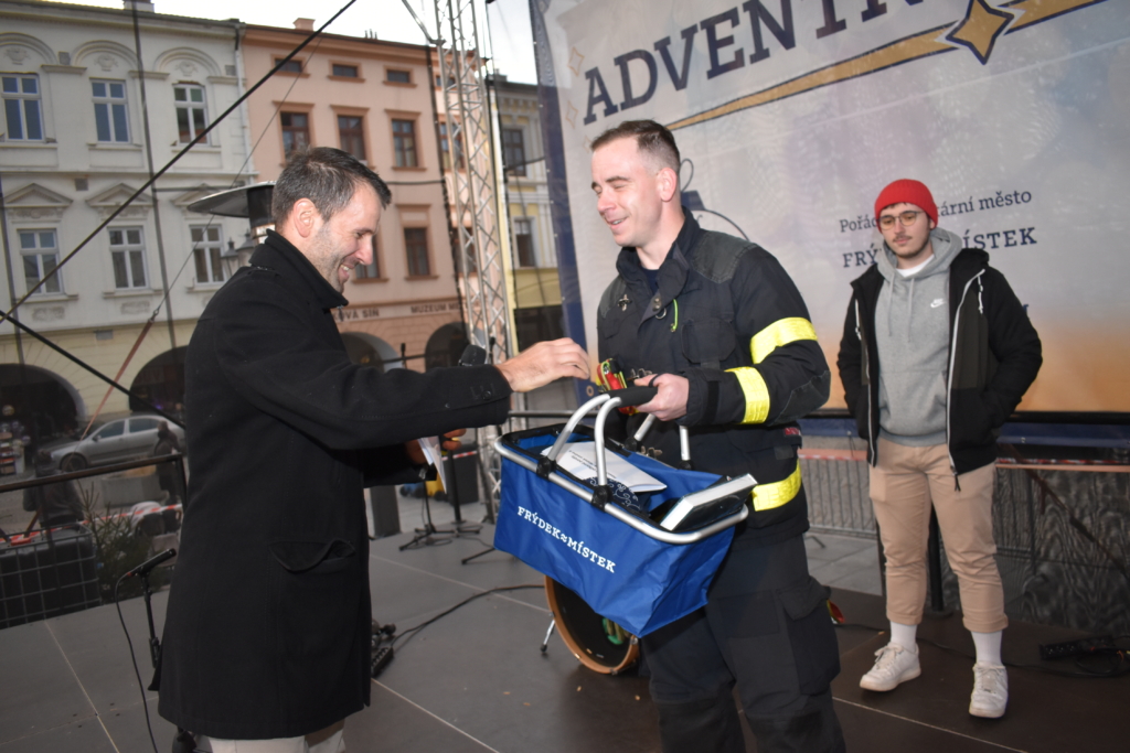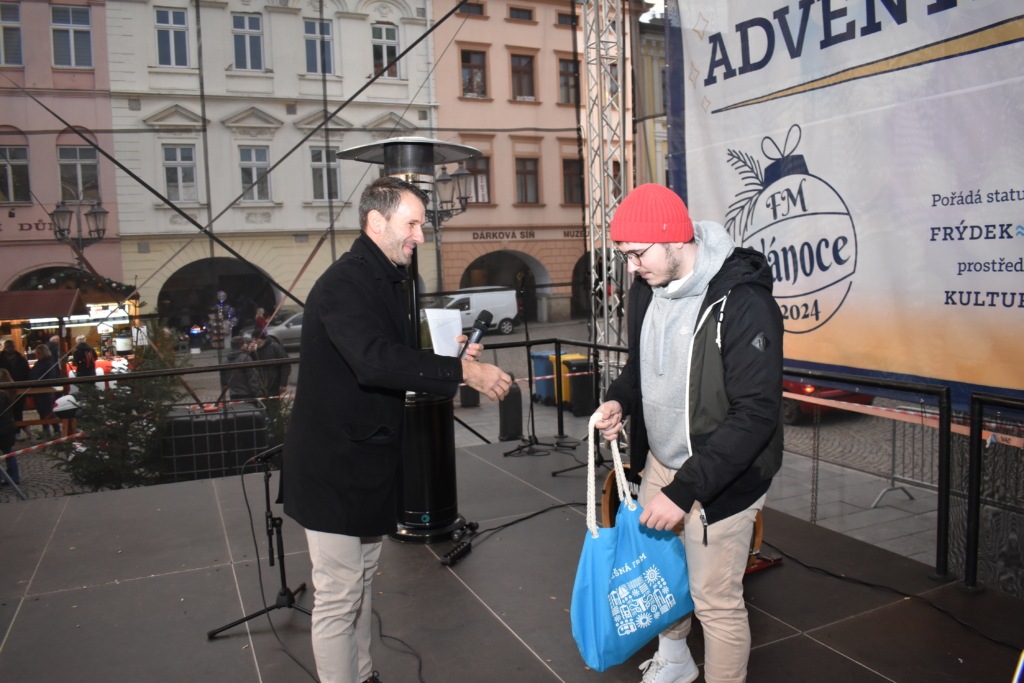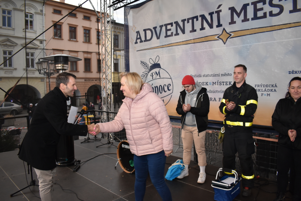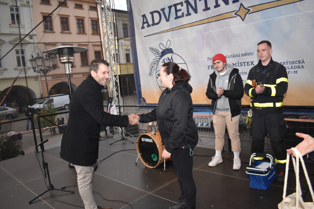 Na druhém místě skončil Filip Rusnák a na třetím Monika Milatová. Cenu za první místo u čtyřčlenné odborné poroty obdrželi hasiči z Frýdku-Místku, kteří se také odvážně pustili do pečení. Na podiu adventního městečka všem poděkoval a ocenil jejich snahu náměstek primátora pro územní plánování a rozvoj, stavebně správní činnosti, ekonomický rozvoj, podnikání, dotace, integrované teritoriální investice, životní prostředí a zemědělství Lukáš Slíva (SPOLU).