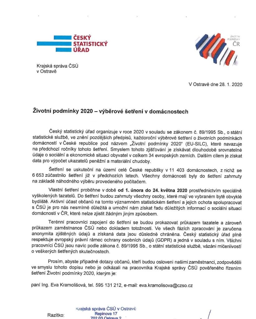 Tazatelé se budou prokazovat průkazem tazatele a zároveň průkazem zaměstnance ČSÚ, popřípadě průkazem totožnosti.