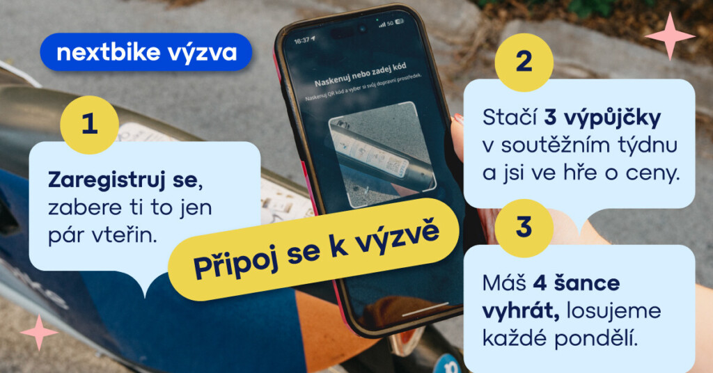 Například pobyt pro dvě osoby na zajímavých místech napříč Českem, fitness náramek Samsung Galaxy Fit3, vstupenky na Colours of Ostrava nebo kreativní kurz. Každý výherce získá navíc i roční předplatné na nextbike. Registrace na webu je nutná pouze jednou, není třeba registrovat se pro každý soutěžní týden zvlášť – více na www.nextbikevyzva.cz.