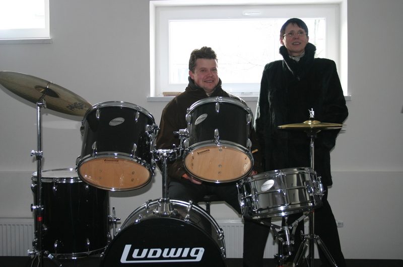 Foto 2: Místostarosta Petr Cvik si ve zkušebně sedl za bicí