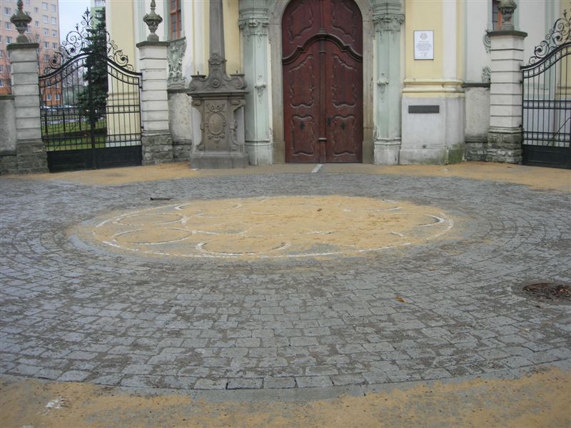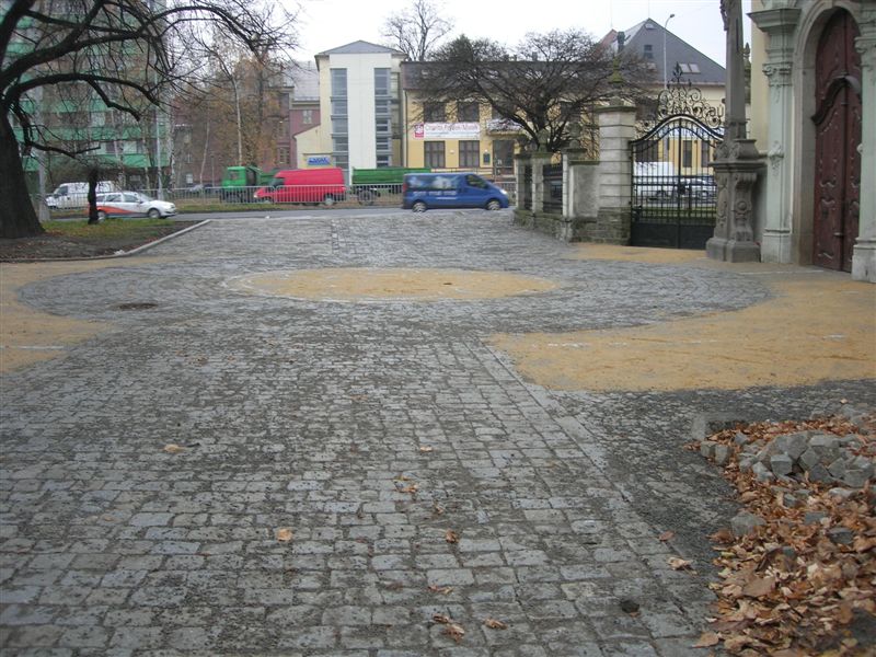 V rámci akce bylo nutné provést kompletní vybourání stávajících asfaltových ploch a obrubníků v dané lokalitě. Prostor byl následně řešen s ohledem na památkově chráněné objekty přírodními materiály, tj. žulovými kostkami. U kostela byl symbolicky vydlážděn i kruhový objezd, aby bylo možno i tuto plochu využít pro účastníky bohoslužeb nebo koncertů. Tato plocha má podobu mozaiky tvořené barevnými kruhy, které nepůsobí výrazně, ale podtrhují důstojnost daného místa.