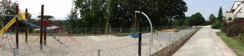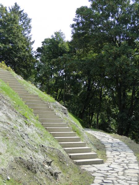 V parku u zámku byla obnovena vyhlídková „bašta“ a nedaleko ní byl umístěn altán s textilním celosezónním zastřešením. Až na menší detaily se také povedlo obnovit cestní síť původní zahrady. Na předlážděné promenádní trase byla vystavěna odpočinková terasa i centrální dětské hřiště a na přilehlém svahu byla nad výraznou terénní strží umístěna spojovací dřevěná lávka. Oba parky propojuje dlouhá linie opěrné gabionové zdi, na jejíž koruně byla postavena trasa chodníku.