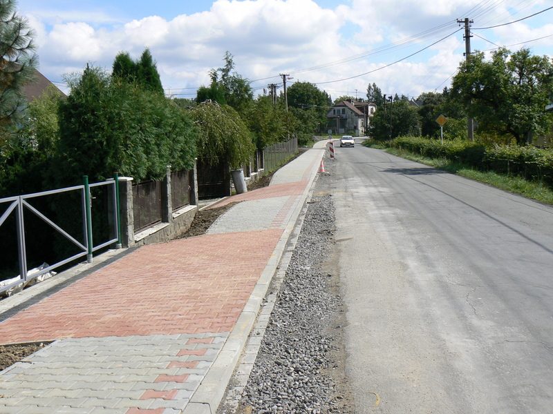 V předchozích dvou etapách byl vybudován chodník od kostela ke kulturnímu domu. Práce na úseku od KD po zastávku „U vrby“ probíhají přes celé prázdniny tak, aby byl chodník se začátkem školního roku připraven k užívání a tím byla zvýšena bezpečnost dětí na cestě do školy.