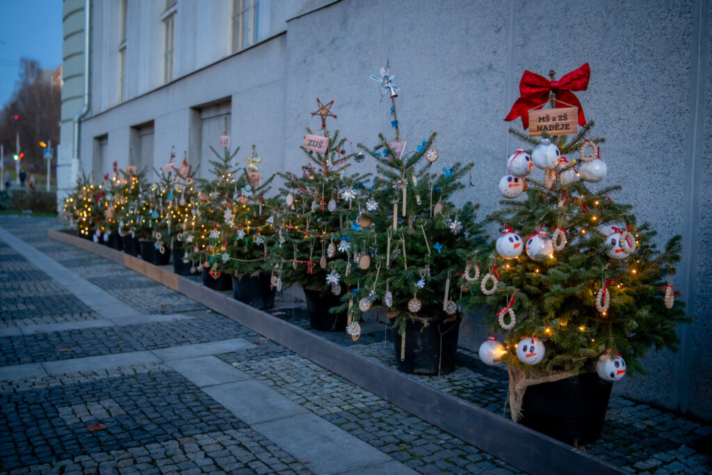 Večerní snímky rozsvícených stromečků
