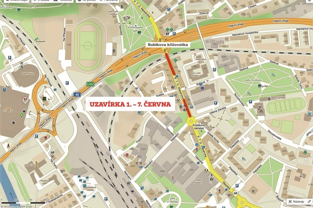 Pozměněn bude také provoz v přilehlé boční ulici Sadová, která vyúsťuje na TGM jednosměrkou. „V této ulici bude dočasně jednosměrka zrušena. Obousměrný provoz si vyžádá zrušení parkovacích míst před poštou,“ dodal náměstek Deutscher.