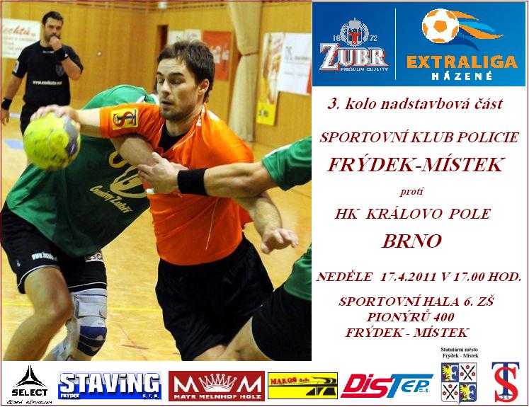 Od prvních minut se hráči SKP ujali vedení , které hosté stačili jen korigovat, nejdál do vyrovnaného stavu12:12 , který byl ve 25.minutě. V postední pětiminutovce ale domácí odskočili na poločasových 16:13. Do druhého poločasu se hráči SKP vrhli střemhlav a výsledkem byla šňůra šesti branek v síti soupeře a skóre narostlo na rozdíl osmi branek (12.minuta 22:14). V 17. minutě skóre narostlo na rozdíl deseti branek (26:16) a ve 24.minutě brankou Hese, narostlo skóre na pro hosty hrozivý rozdíl dvanáctí branek (30:18). V pohledném utkání nakonec házenkáři SKP Frýdek-Místek zaslouženě získali potřebné body, které jsou potřeba v záchranářských pracech na udržení extraligy.