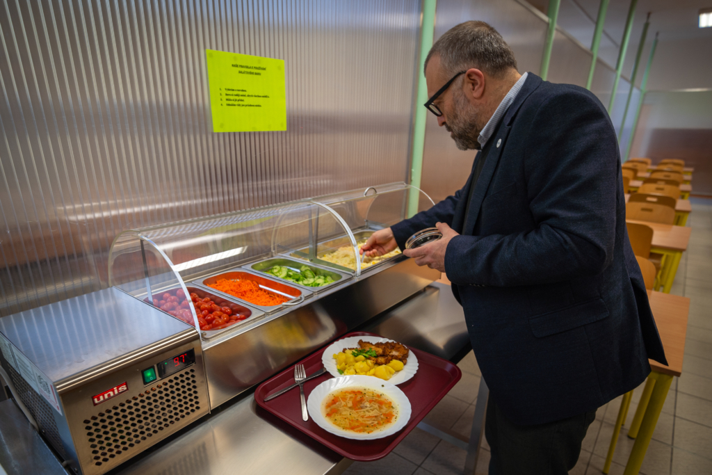 „Dáváme krok za krokem do pořádku zázemí škol, tak, aby naše zařízení nabízela jednotné komfortní prostředí dětem i zaměstnancům. Vydali jsme se proto na pětku zkontrolovat, jak slouží zrekonstruovaná kuchyně, a pochutnali si na školním obědě. Domluvili jsme se s vedením školy, že letos v létě kompletně zrekonstruujeme vstupní šatny,“ uvedl primátor Petr Korč (Naše Město F-M).
