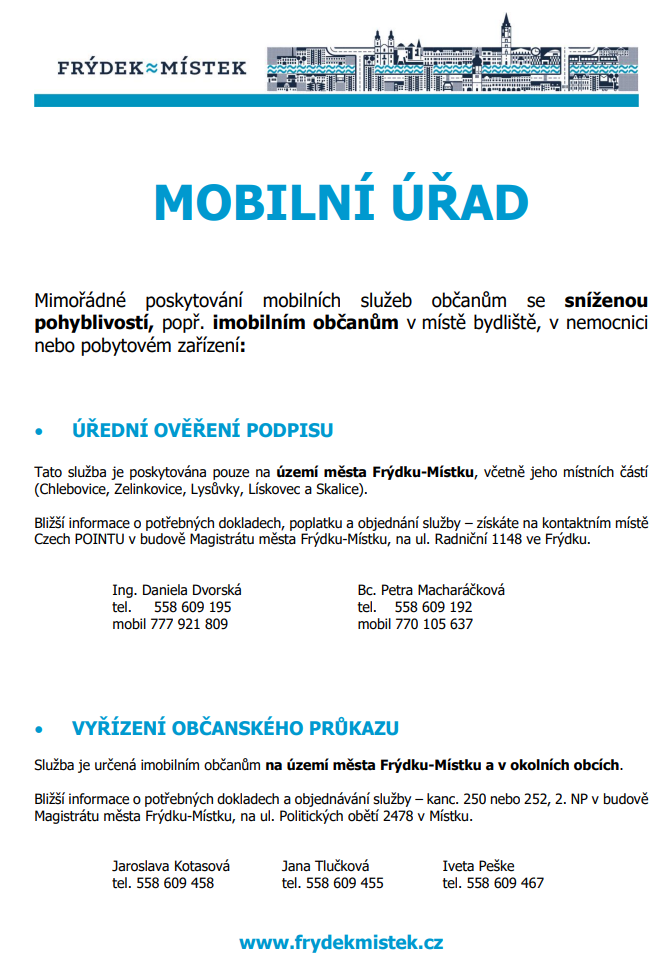 Když nemůžete na úřad, úřad přijede za vámi. Ve Frýdku-Místku služby v terénu zajišťuje mobilní úřad pro potřeby občanů, kteří mají zdravotní omezení a nemohou na úřad osobně.