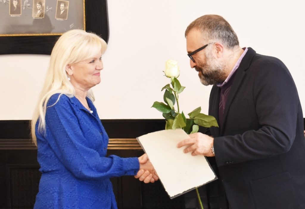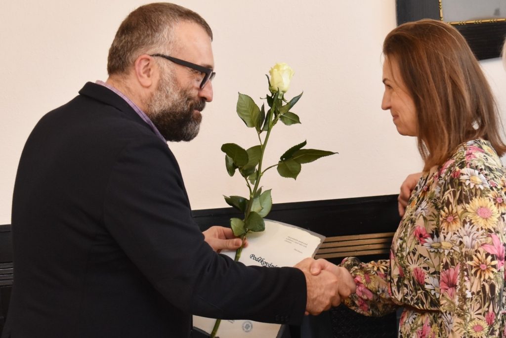 Učitelé poté převzali z rukou primátora a vedoucího odboru školství, kultury, mládeže a tělovýchovy Jiřího Adámka ocenění a růži za svůj pedagogický přínos. Setkání poté pokračovalo neformální diskuzí.