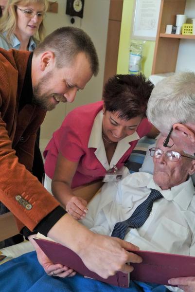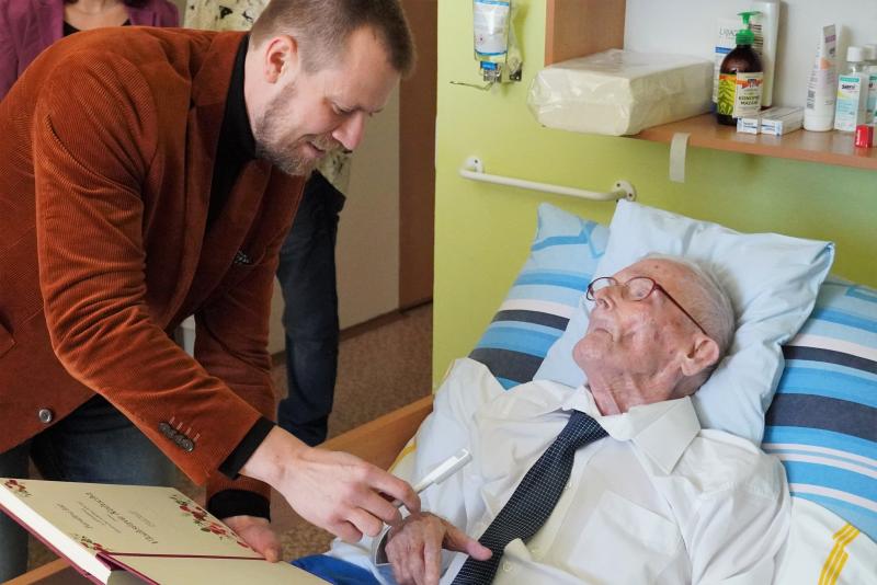 Vladislav Kožuch se narodil v roce 1919 v Chlebovicích jako předposlední ze sedmi dětí. I jeho rodina byla poznamenána brzkým odchodem jednoho z rodičů, o děti se musela postarat maminka sama, a tak nepřekvapí, že už od útlého dětství musel pracovat na statku u sedláků. Ovšem byl to bystrý a inteligentní chlapec, který se dobře učil. V časech hospodářské krize jej ale po ukončení školní docházky žádná velká kariéra nečekala, musel vzít za vděk dělnickými profesemi. Ani válečné roky nemohly přinést světlejší zítřky, dokonce byl za války uvězněn gestapem v koncentračním táboře v Dachau, protože byl obviněn z ilegální protinacistické činnosti. „Osudy mnoha lidí, kteří se dožijí takto požehnaného věku, jsou mnohdy velmi těžké a někdy to vypadá, jako by jim někdo chtěl dát na tomto světě jako kompenzaci více času. Každopádně je na místě všem těm, co se dožijí dvou nul, popřát, aby všechen jim vyhrazený čas prožili co možná nejlépe,“ řekl primátor Michal Pobucký, který se dozvěděl i veselejší informace o jubilantovi, který rád cestoval, poznával nové kraje, nové lidi a byl vždy velmi společenský. To prokazoval i v domově, kde se zapojil do společenského života, byl členem rady domova a přispíval svými články do časopisu Domovník. Psaní vůbec miloval – sepisoval regionální dějiny, napsal rodinnou kroniku, vydal knihu svých vzpomínek a přispíval do časopisů. Přejeme mu, aby i ve svém životě přidal ještě nějakou tu kapitolu…