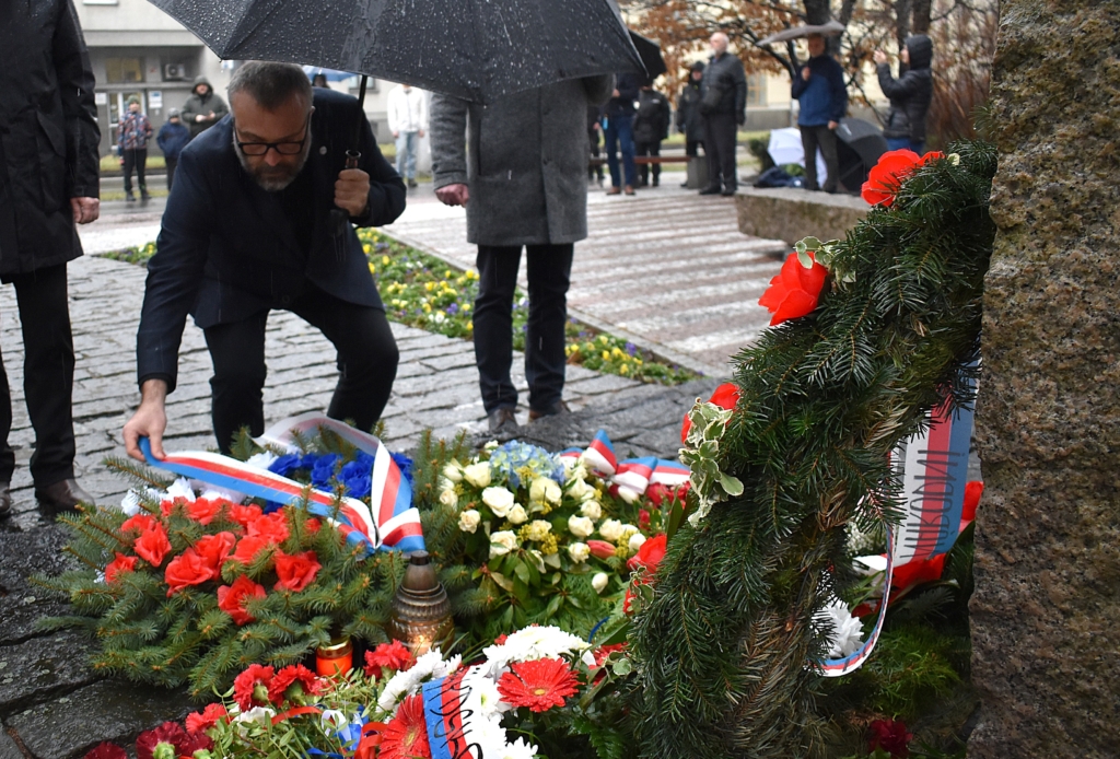 Členové vedení města položili věnec k Památníku 8. pěšího pluku Slezského na Hlavní třídě v Místku, v místě bývalých kasáren. Hrdinům vzdal v proslovu hold primátor Petr Korč (Naše Město F-M).