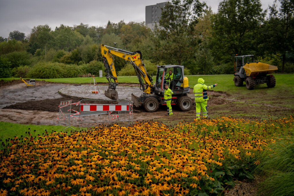 Technické služby v parku zvětšují tamní stávající kamenné pódium z důvodu jeho účelnějšího využití nejen pro kluziště, ale také například pro budoucí kulturní vystoupení a odpočinkové aktivity. Jde o drobné terénní úpravy a vybudování mlatového povrchu o velikosti 300 m2.