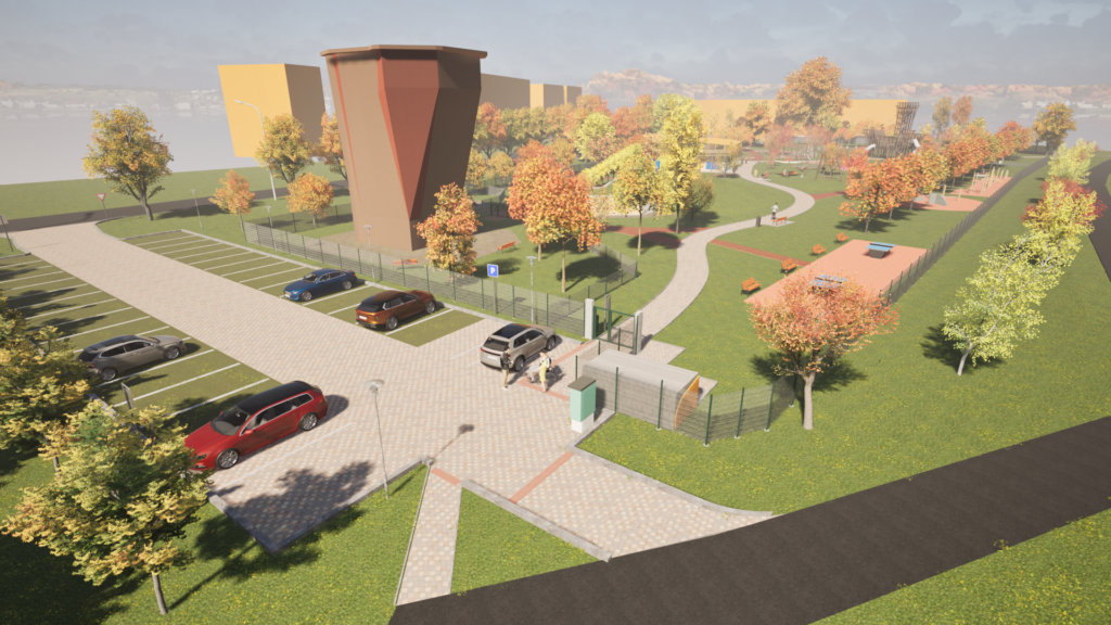 „Dominantou areálu bude lezecká věž, která je ve městě dlouhodobě žádaná. Bude vysoká 15,3 metru, tvořena ocelovou konstrukcí a opláštěná laminovanou překližkou. Parametry věže budou umožňovat pořádání oficiálních sportovních klání. Uvnitř věže bude sklad lezeckého materiálu,“ uvedl náměstek primátora pro investice, finance, rozpočet, útvar hlavního architekta a majetkoprávní vztahy města Jiří Kajzar (Naše Město F-M).