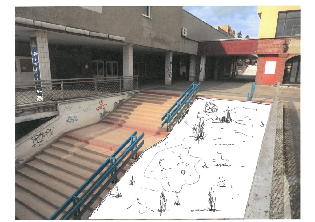 Kultivace prostoru u bývalého obchodního centra Růžový pahorek by mohla být realizována ve čtyřech etapách. Návrh zahrnuje mimo jiné razantní zúžení dnes zbytečně širokého schodiště v horní i střední části, které by mělo být z velké části nahrazeno zelení. Velkou proměnu by mohla projít plocha od obchodu s potravinami k červené lávce přes cestu ke Kauflandu. Téměř celá střední část této nadzemní asfalto-betonové plochy by mohla být vybourána a propojena jednoduchou lávkou. V konečném důsledku by to vypadalo tak, že se jedná o dva blízko sebe stojící objekty spojené lávkou a zároveň napojené na další lávku přes čtyřproudovou silnici Revoluční, která odděluje sídliště od frýdeckého náměstí.