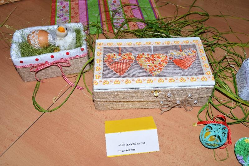 Kdo byl na Velikonoce výborně připraven, ukazovala Velikonoční výstava, která před dny volna proběhla na magistrátě, v zasedací místnosti odboru sociálních služeb. Návštěvníci zde mohli zhlédnout výrobky vytvořené v klubech seniorů statutárního města Frýdku-Místku. Tvořivost a zručnost našich aktivních seniorů se ukázala v opravdu pestré škále. K vidění bylo mnoho nejrůznějších originálních velikonočních výrobků a technik zdobení vajíček, od jednoduchého barvení, olepování, batikování, až po složitější techniku vrtání kraslic modelářskou frézkou. Své práce vystavovalo ve dvou dnech jedenáct klubů seniorů. Obdivovány byly především obrovské originální kraslice z pštrosích vajec, které madeirovou technikou vytvořila paní Marie Modrovičová z klubu seniorů Zelinkovice. „Chlebovice předvedly zajímavá obří háčkovaná vejce, Malý Koloredov vystavoval vejce opletená korálky, klub seniorů Skalice a Charita upoutali pozornost vejci malovanými a zdobenými drátkovou technikou, klub z Lískovecké se pochlubil velikonočními vajíčky vytvořenými technikou quilling, Lískovec upoutal zajícem z proutí a chutně vyhlížejícím beránkem z třeného těsta, kluby Zámecká, Sadová, 1. máje, 17. listopadu vytvořily nápaditá háčkovaná a pletená vajíčka,“ vyjmenovala Šárka Carbolová, koordinátor aktivizačních programů pro seniory.