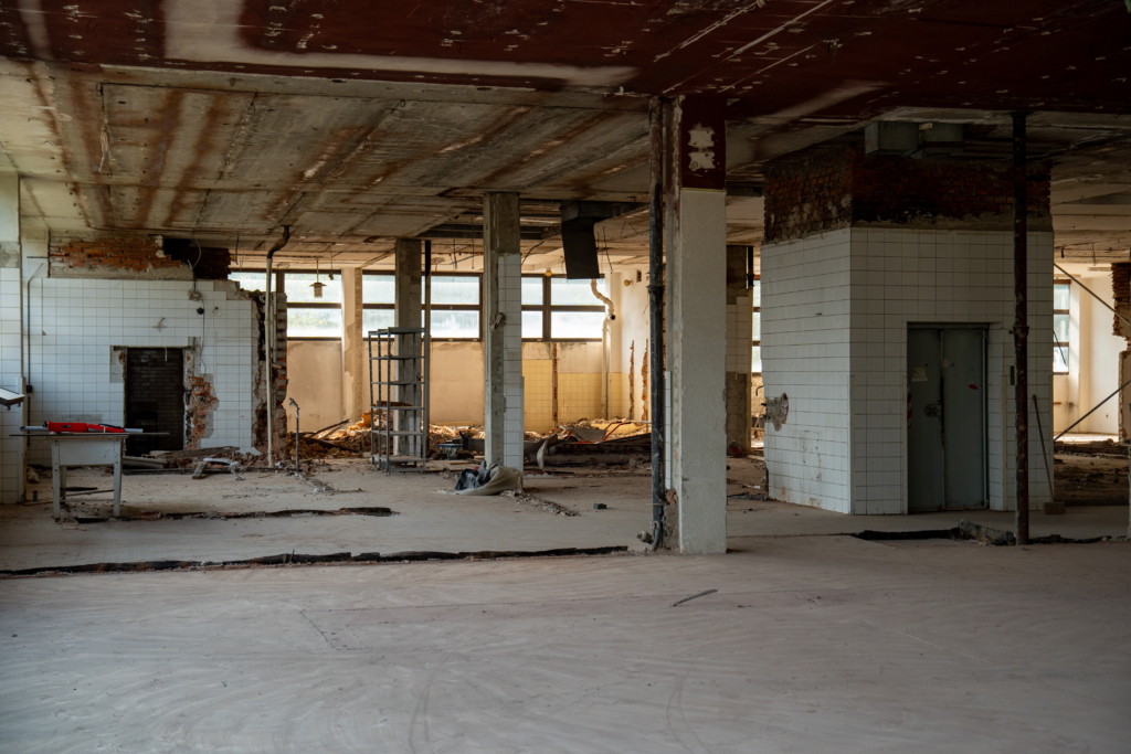 Letos vlastník dokončil demontáže v interiéru. Řemeslníci zcela vyklidili původní obytnou i administrativně-technickou část od veškerého mobiliáře, inventáře i starých ekologických zátěží, jako jsou sklady chemických látek, nebezpečné odpady a další. Došlo také k odstrojení původních vnitřních technologií a gastro-vybavení, k demontážím původně zakrytých instalací, keramických obkladů a dlažeb, podhledů, krytů a dalších povrchových a podpovrchových konstrukcí.