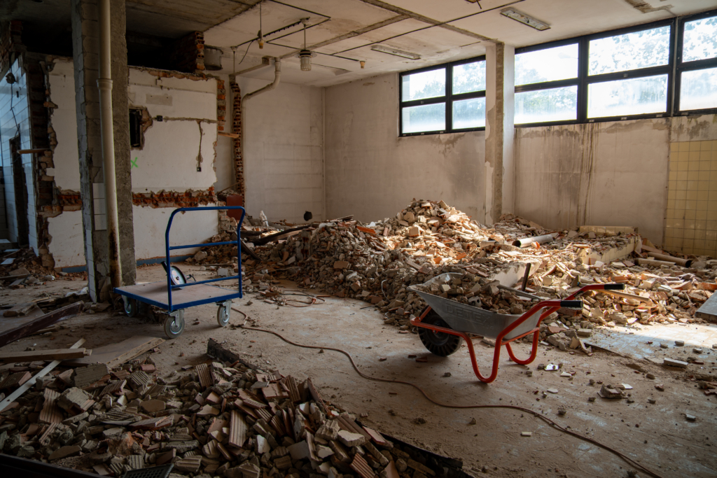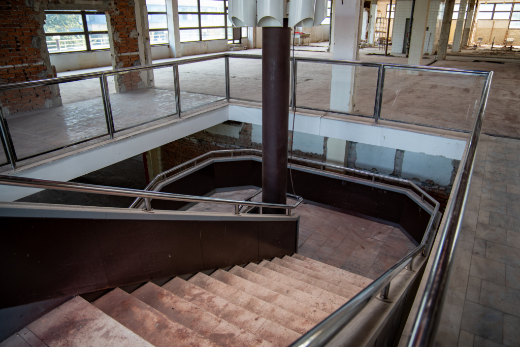 Stavba je nyní uvnitř vyčištěna až po obnaženou úroveň některých nosných konstrukcí