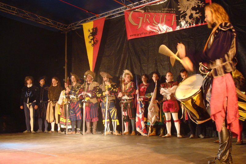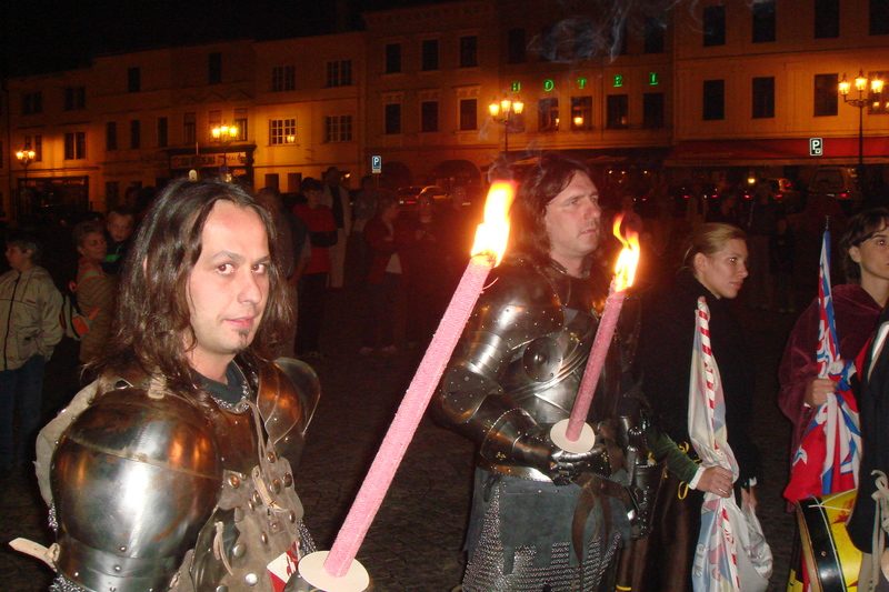 Statutární město Frýdek-Místek zábavu svěřilo společnosti Durandal a umělecké agentuře Gryff. Vše začalo ohňovým průvodem, a protože se jeho aktéři nemuseli obávat, že jim zažehnuté louče skropí nevítané dešťové kapky, přišlo se na ně podívat okolo osmi set lidí. Mnoho jich průvod z náměstí oželelo, jen aby zaujali výhodná místa před jevištěm. Na něm a před ním pak rytíři ve zbroji i šermíři předvedli, co čeká návštěvníky na druhý den v neděli, kdy se romantika historie ukázala v plném světle. Večerní vystoupení si nenechala ujít ani primátorka města Eva Richtrová. „Vždycky mě potěší, když si můžeme ověřit, že naše aktivity lidé vítají. Vůbec jsem nečekala, že zájem může být až tak veliký. Když se vydaří počasí, je příjemné takto si navečer vyjít za zábavou,“ hodnotila vydařený start Frýdeckých slavností primátorka.