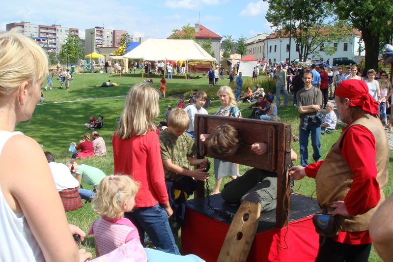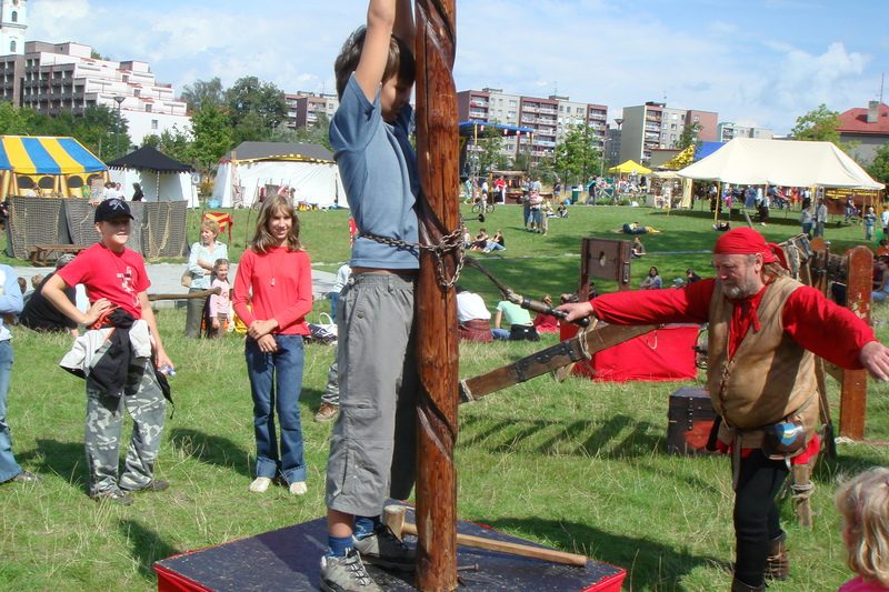 V neděli už si mohli přijít na své i ti, kteří po setmění musí být již v posteli. Po celý den je čekal v parku zajímavý program s koloritem historického jarmarku se spoustou kulis a dobových kostýmů. Představily se historické hudební a taneční skupiny, neustále byly k vidění barbarské nebo šermířské souboje, nechyběly vtipné divadelní kusy a rytířské hry pro děti i dospělé. Kdo chtěl, mohl si zastřílet z kuše, luku nebo praku, hodit si pro štěstí podkovou na cíl, pohánět kolo nebo se masochisticky nechat týrat v katovně. Velkým hitem byli sokolníci, kteří představili množství dravců. K některým nebylo radno se vůbec přibližovat, ale s ochočenou sovou se mohli všichni klidně nechat vyfotografovat. „Rytířské slavnosti vždycky připomenou tradiční hodnoty a ve specifické atmosféře osvěží lidskou pospolitost, takže i proto pro ni najdeme v kalendáři určitě místo i napřesrok,“ ujistila primátorka Eva Richtrová.